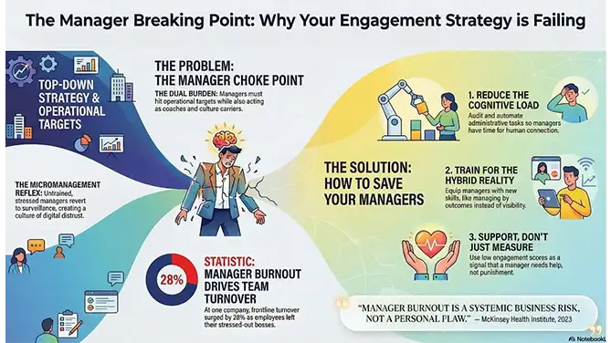 As leaders, we often talk about "Employee Experience" (EX). But we rarely talk about "Manager Experience." And the data from recent case studies like Northwell Logistics and InventaCore Systems reveals a frightening truth: we are burning out the very people we rely on to fix burnout.